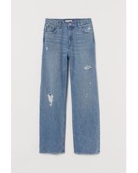 H M Denim Wide High Jeans In Light Denim Blue Blue Lyst