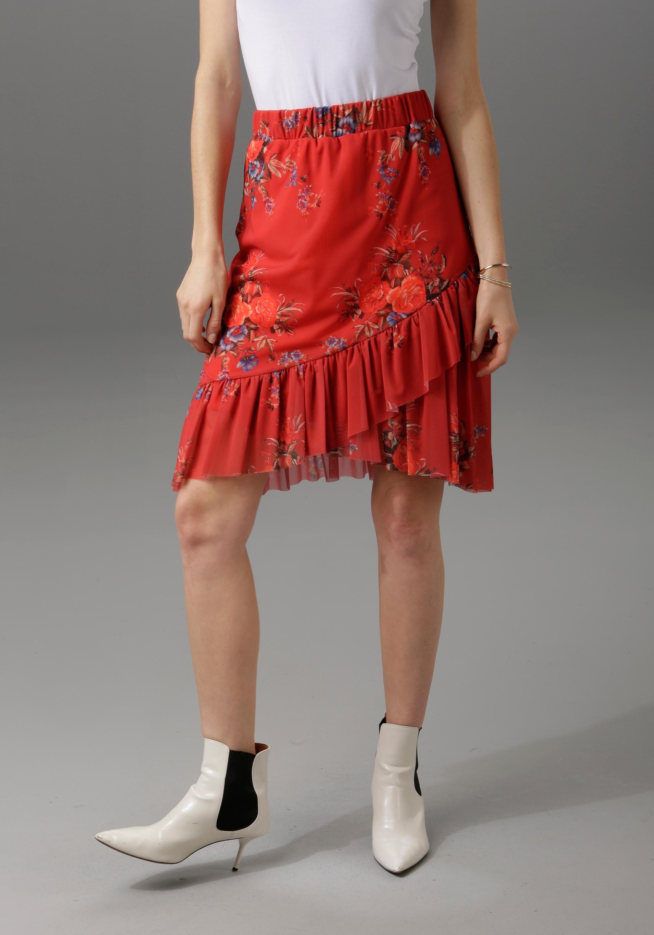 Geh Bunt Rock Susanna Sommer Aubergine Mit Grossen Blumen