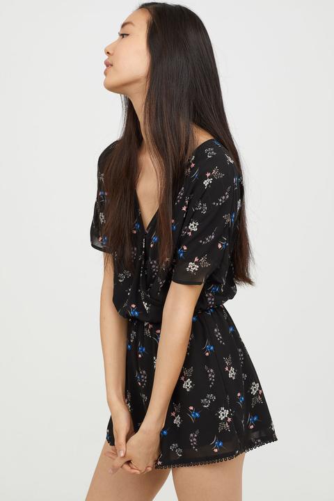 Jumpsuit Mit V Ausschnitt Schwarz Ladies H M De From H M On 21 Buttons