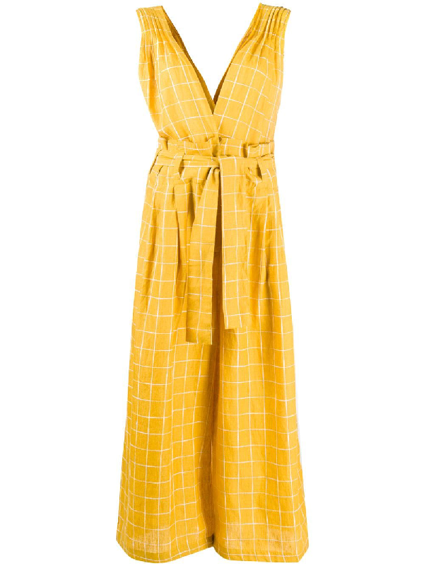 Mes Demoiselles V Neck Wide Leg Check Jumpsuit In Yellow Modesens