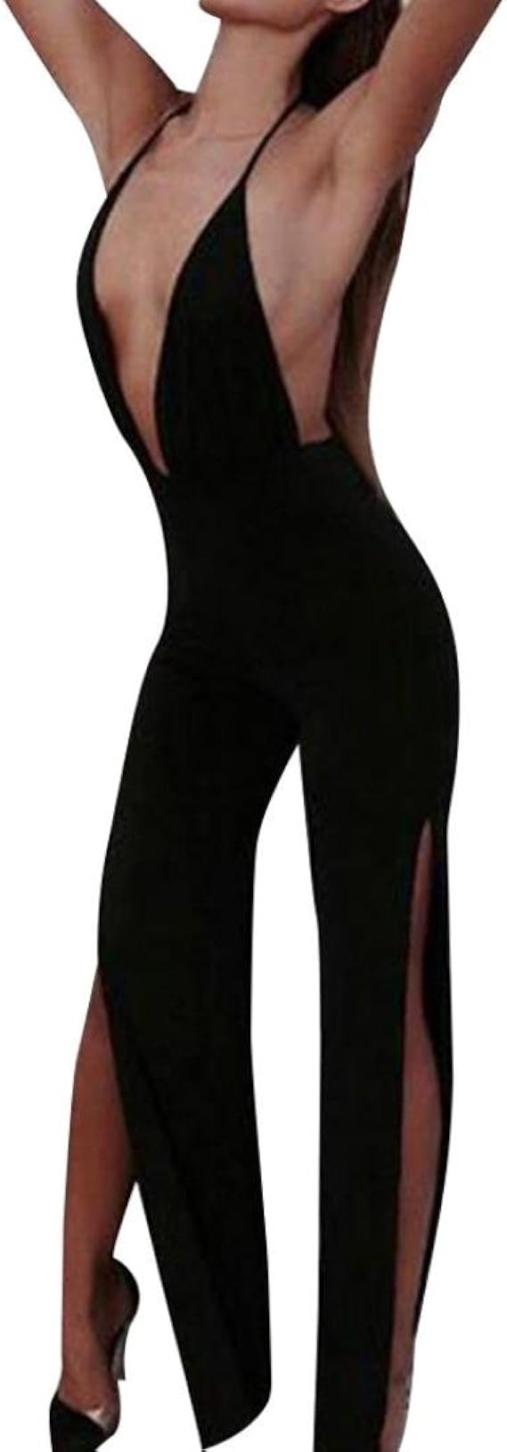 Longra Lady Sexy Black Halter Deep V Neck Jumpsuit Long Pants Jumpsuit Summer Jumpsuit Backless Sleeveless Long Playsuit Party Clubwear Overalls Jumpsuit Amazon De Bekleidung