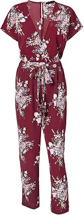 Damen V Ausschnitt Hoch Tailliert Blumendruck Jumpsuit Rose Boutique
