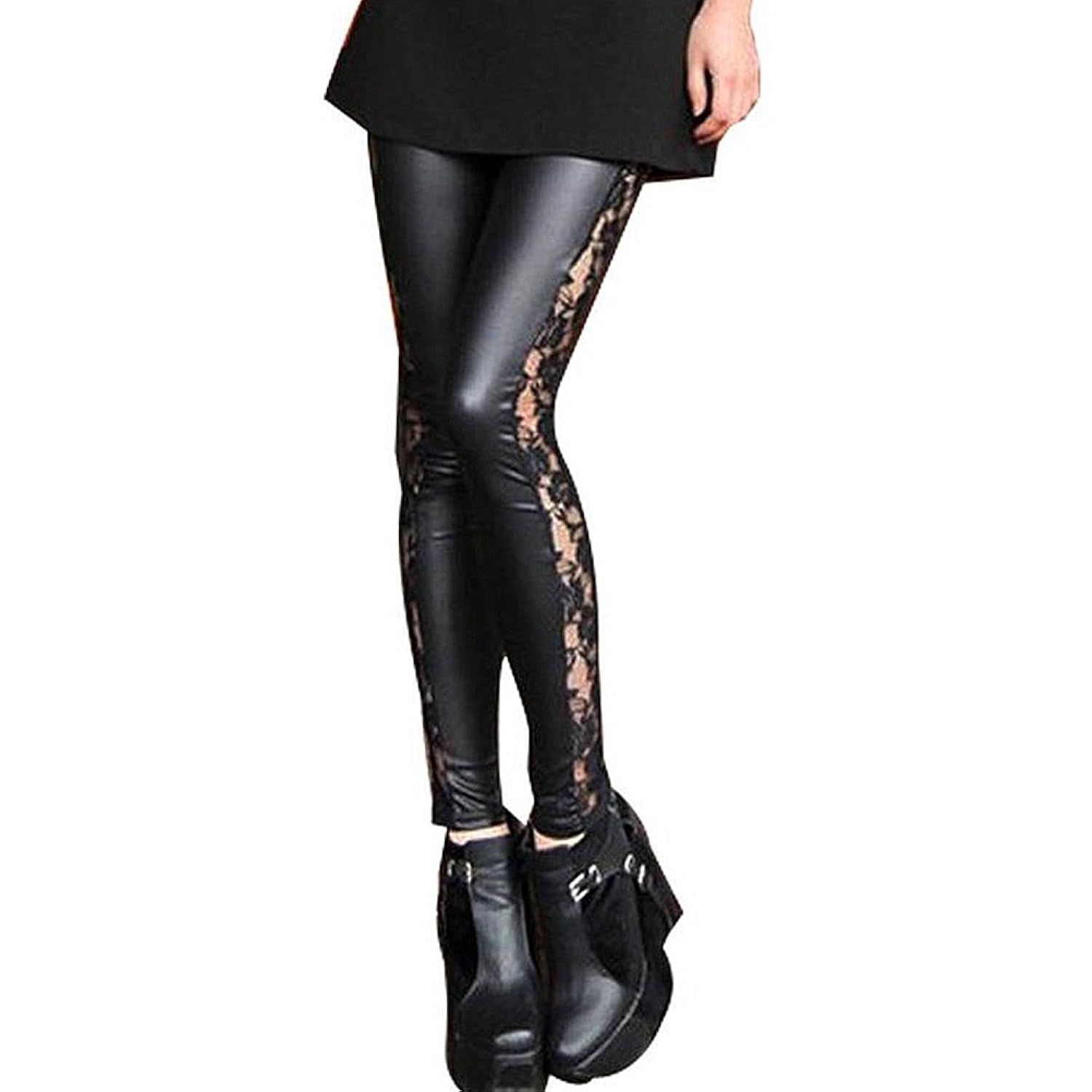 Damen Kunstlederhose Hose Jeggings Lederhose Stretch Wet Look Lederoptik Damen Hosen Aus Spitze