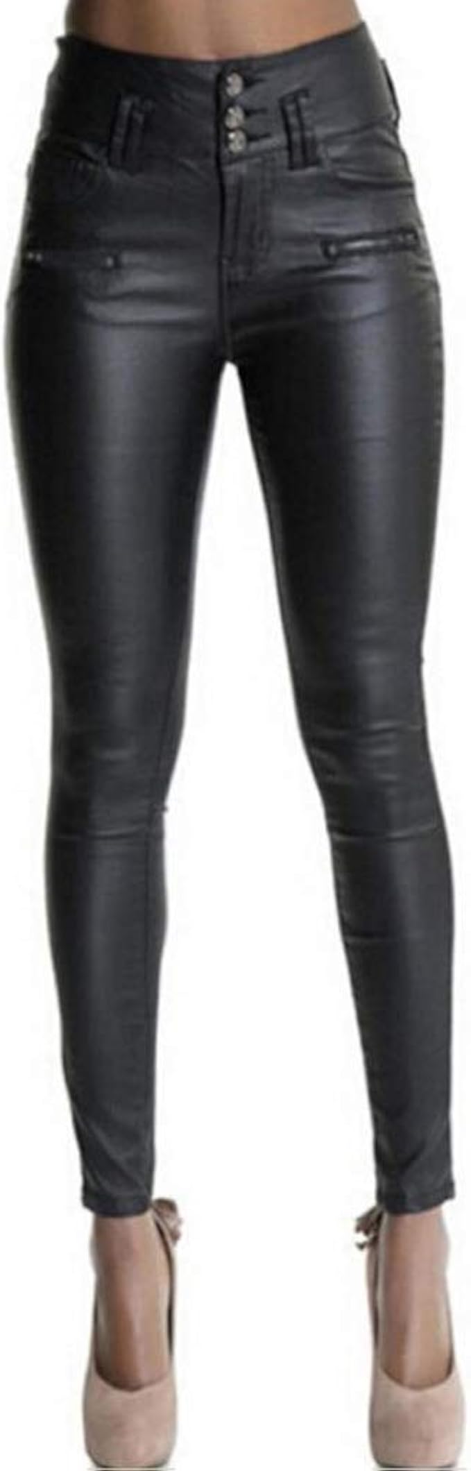 Damen Damen Rohre High Waist Leggings Leder Optik Jeggings Skinny Stretch Hose S24 Kleidung Accessoires Expertdigital Net