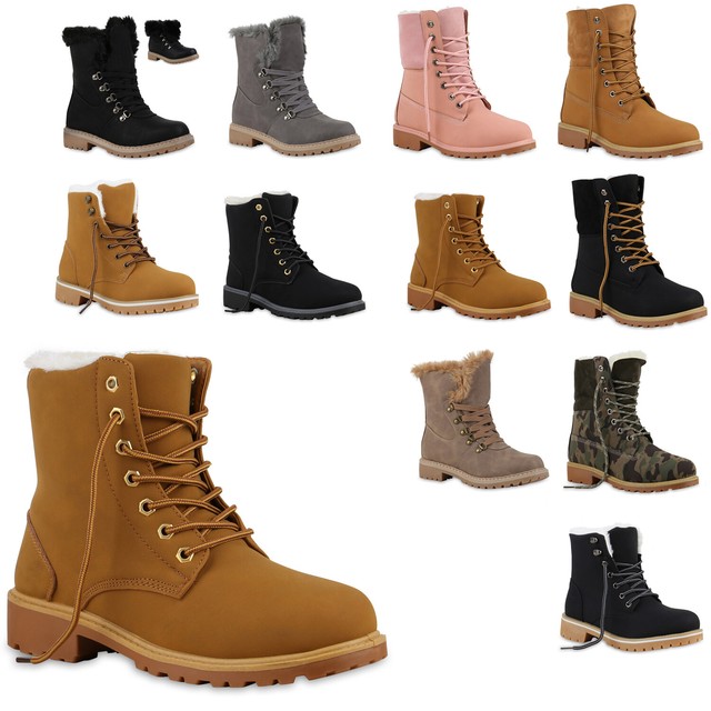 Damen Stiefeletten Boots Stiefel Booty Gefutterte Winterschuhe Schuhe Warmfutter Ebay