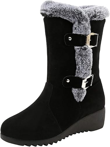 Wwricotta Damen Stiefel Keilabsatz Freizeitschuhe Plateauschuhe Wildleder Plusch Schnalle Wedges Schneeschuhe Schneestiefel Warme Gefutterte Winterstiefel Amazon De Schuhe Handtaschen