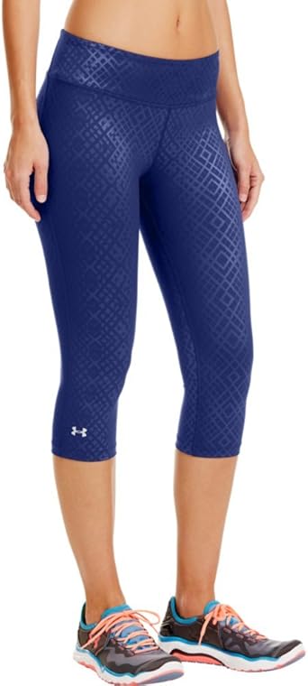 Amazon Com Under Armour Heatgear Sonic Women S Embossed Capri Running Tights Medium Purple Clothing