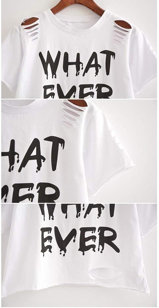 Fun Bekleidung T Shirt Damen Kurzarm Sommer Bauchfrei Crop Tops Locher Zerrissene Kurzarmshirt Buchstaben Gedruckt Casual Shirt Bekleidung Cerocero Mx