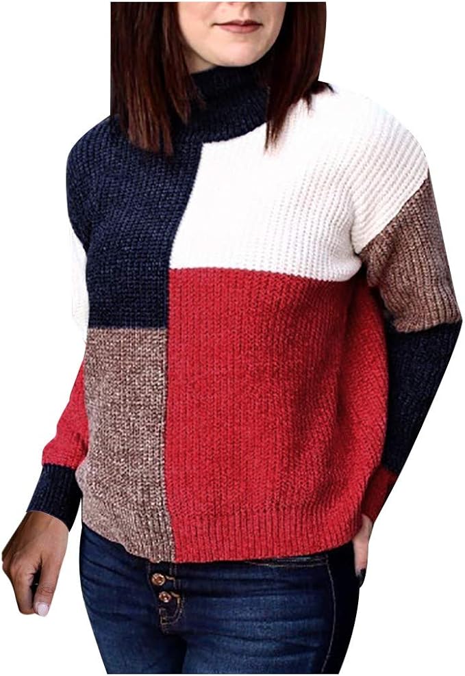 Lialbert Damen Elegant Rollkragenpullover Oversize Strickpullover Farbblock Pullover Winter Sweater Langarm Beilaufige Grobstrickpullover Strickpulli Sweatshirts Amazon De Bekleidung