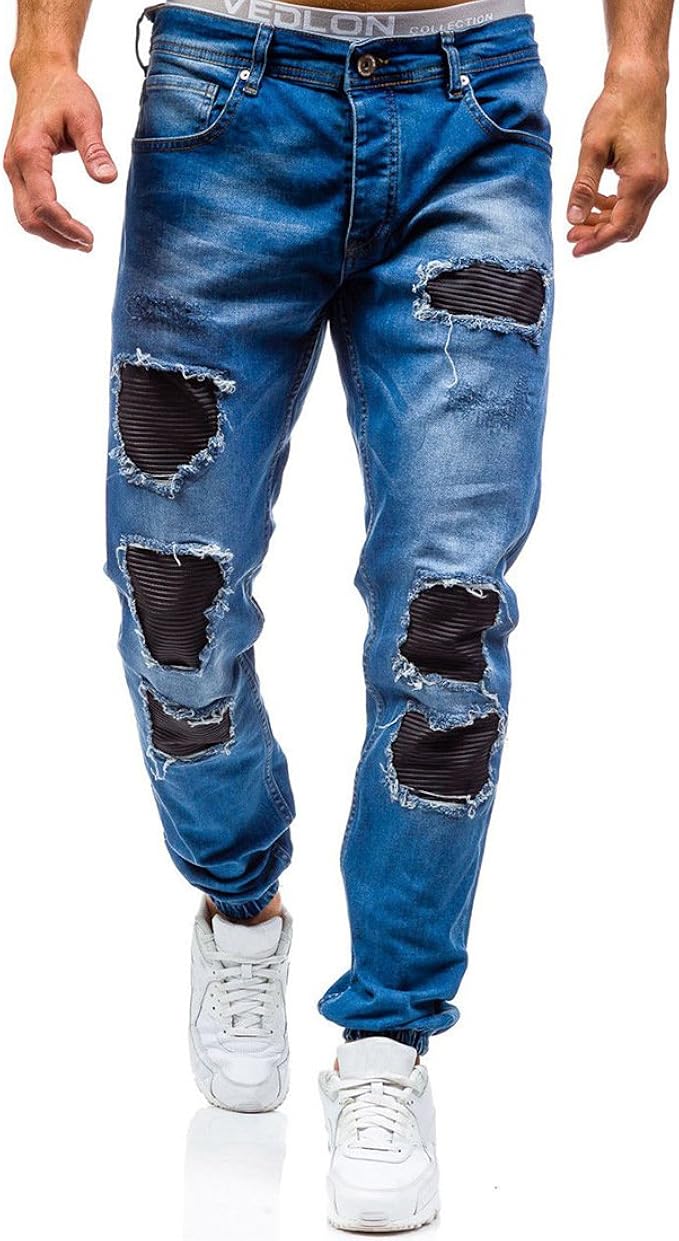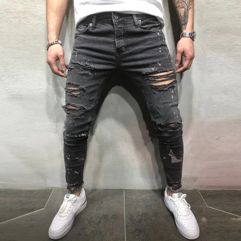 Mens Ripped Jeans Destroyed Retro Casual Zipper Skinny Distressed Denim Trousers Eur 23 91 Picclick De