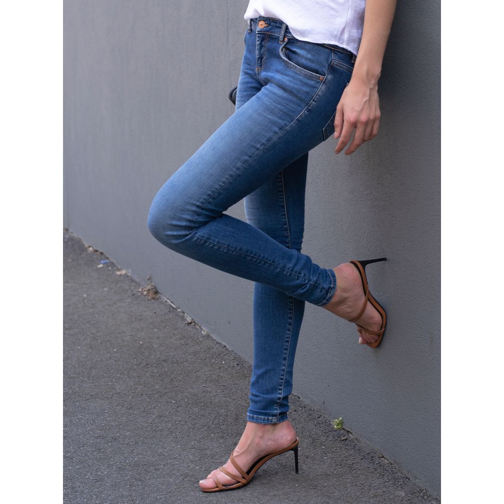 FIT DETAILS Jessica is 5’3, 32DD, and size 1 with 25" waist and wearing a size 1 *These have plenty of stretch, we recommend sizing down if you are in between sizes Note from the team Melissa is 5'3, 150 lbs, 38D, and normally wears a 9 in jeans, and wears a 7 in these Approx Measurements Rise 85" / Inseam. Light blue Double button closure LTB branding on change pocket Distressing on front of jeans Small rip on one knee LTB branding on back pocket and at top of waist band at back Stretch denim Material Denim Women Jeans Skinny Jeans Brands LTB YOU MAY ALSO LIKE Josie Frayed Ankle Skinny K95 NZD$ Dillon Split Ankle Denim 8086 NZD. LTB LONIA Jeans Skinny Fit feal undamaged wash € 31,15 € 47,9530%.