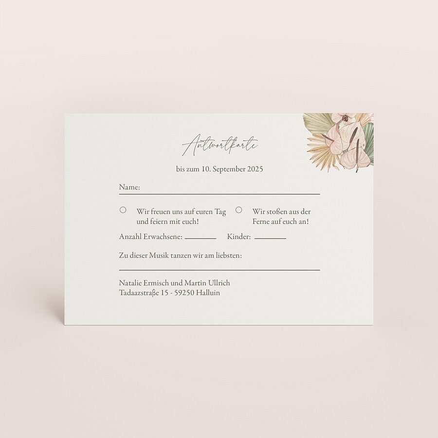 Antwortkarte Hochzeit Pampas Peony