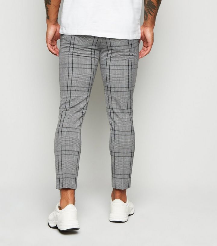 Dark Grey Check Skinny Crop Trousers New Look