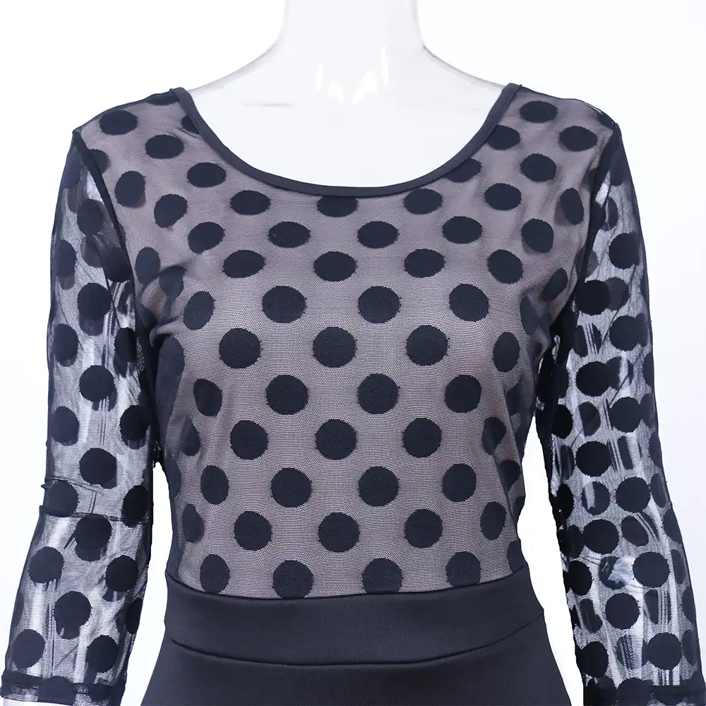 50s 60s Polka Dot Optische Tauschung 3 4 Sleeve Swing Spitzenkleid Frauen Abend Lassig Eine Linie Kleid Gearbest Deutschland