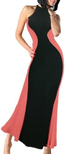Damen Maxi Schlankmachend Optische Tauschung Kontrast Kleid Amazon De Bekleidung