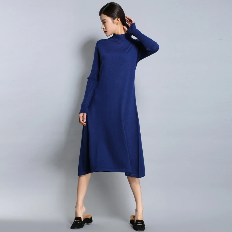 Winter Gestrickte Kaschmir Kleid Frauen Rollkragen Kaninchen Haar Wolle Gestrickte Gerade Kleider Frau Blau Kamel Einem Stuck Strickwaren M L Kleider Aliexpress