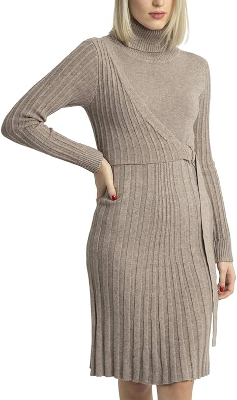 Apart Elegantes Damen Kleid Strick Kleid Mit Kaschmir Anteil Wickel Optik Rollkragen Amazon De Bekleidung
