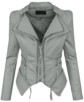 Damen Kurz Geschnitten Kurz Lange Lederjacke Slim Fit Biker Style Demi Weiss Amazon De Bekleidung