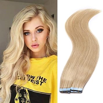 Tape Extensions Echthaar 50g Haarverlangerung 100 Echthaar Extensions Tape In Glatt 613 Hell Lichtblond 40cm Amazon De Beauty