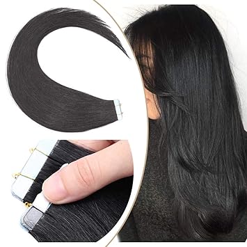 Tape Extensions Echthaar Remy Echthaar Extensions Tape Haarverlangerung Glatt Tiefschwarz 40cm 50g Amazon De Beauty