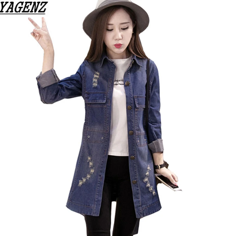 Jeansjacke Frauen Mittlerer Lange Jeans Mantel Damen Jacken Tops Loch Langen Armeln Plus Grosse 4xl Frauen Basic Mantel Yagenz 264 Denim Jacket Women Jacket Womenladies Jacket Aliexpress