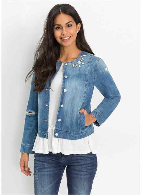 Damen Jeansjacke Mit Perlen Und Strass Arizona Shopping De