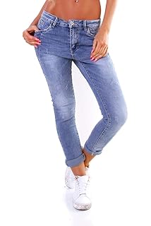 Damen Jeans Karostar Baggy Damen Jeans 4 Button Knopfleiste Strass Zipper Style Gr 38 48 Kleidung Accessoires Items Aurora Com Gt