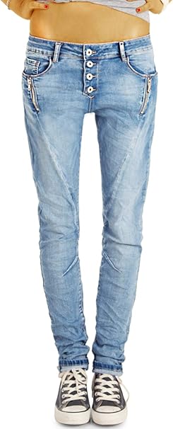 Be Styled Baggy Damen Jeans Mit Stylischer Knopfleiste Tapered Girlfriend Boyfriend Fit J9l
