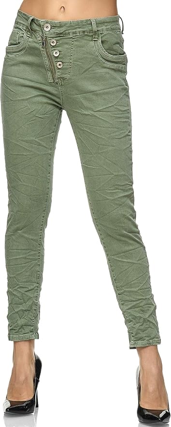 Damen Jeans Baggy Boyfriend Hose Chino Knopfleiste Simoda