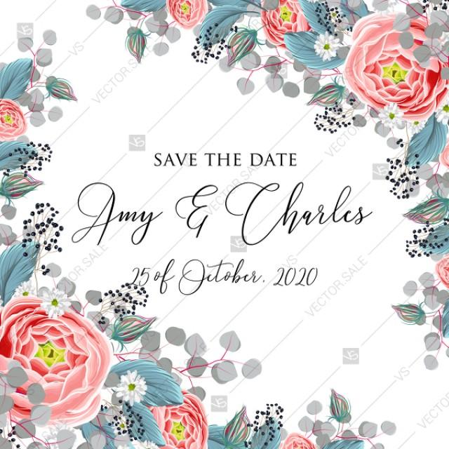 Save The Date Wedding Invitation Set Pink Peony Tea Rose Ranunculus Floral Card Template Pdf 5 25x5 25 In Online Maker Weddbook