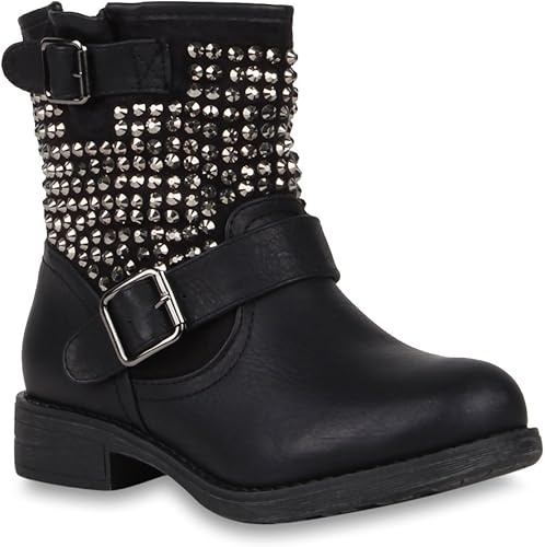 5750 Damen Stiefeletten Biker Boots Booties Nieten Mode Damenstiefel Stiefeletten