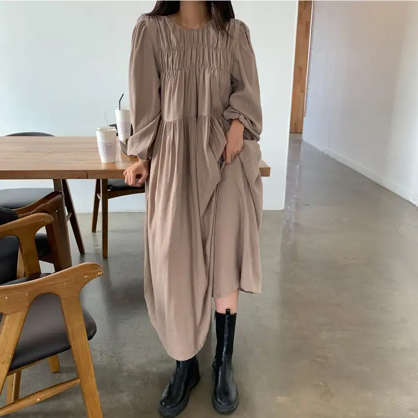 Herbst Winter Frau Plus Grosse Lange Kleid Vintage Volle Hulse Oansatz Lose Einfarbig Casual Damen Kleider Elegante Kleider Aliexpress