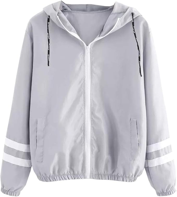 Kanpola Kapuzenjacke Leichte Jacken Damen Gestreifte Patchwork Windbreaker Zip Hoodie Sweatjacke Fruhling Sommer Herbst Ubergangsjacke Amazon De Bekleidung