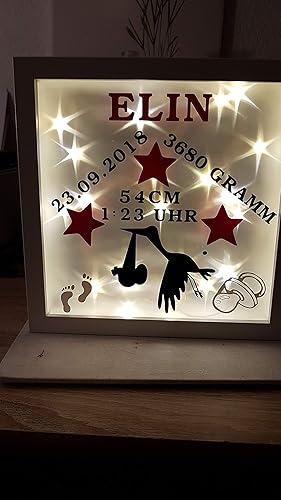 Ribbarahmen Beleuchteter Bilderrahmen Geburt Taufe Ca 23 23 Cm Mit Led Lichterkette Sternenfolie Und Spruch Amazon De Handmade