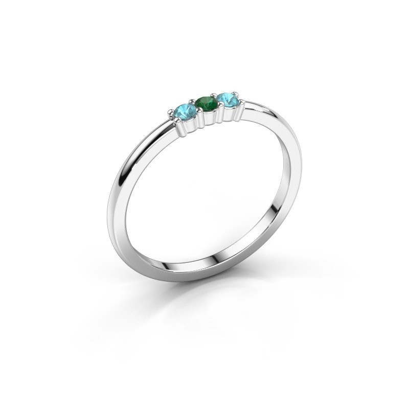 Platin Memoire Ring Yasmin 3 Mit 2 Mm Smaragd Und Blau Topas 30
