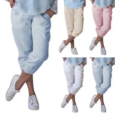 Damen Frauen Leinen 3 Viertel Hose Cropped Hose 3 4 Relaxed Fit Sommer Shorts Ebay