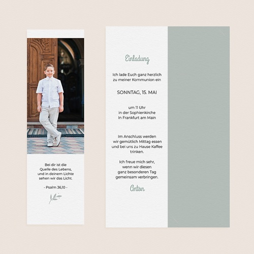 1100 Einladungen, Einladungskarten zur Kommunion, für Jungen und für Mädchen, mit Fotos und eigenem Text, Individualisierbar, Klappkarten im DIN A6 Format, Postkartenformat, mit Psalm und Kirchenmotiven, Christliche Symbole Weitere Ideen zu kommunion, einladungen, einladungskarten. Im Auftrag sind Einladungen zur Kommunion entstanden. Einladungskarten Kommunion Jungen Der absolute TOPFavorit unserer Produkttester Welche Informationen vermitteln die Rezensionen im Internet?.