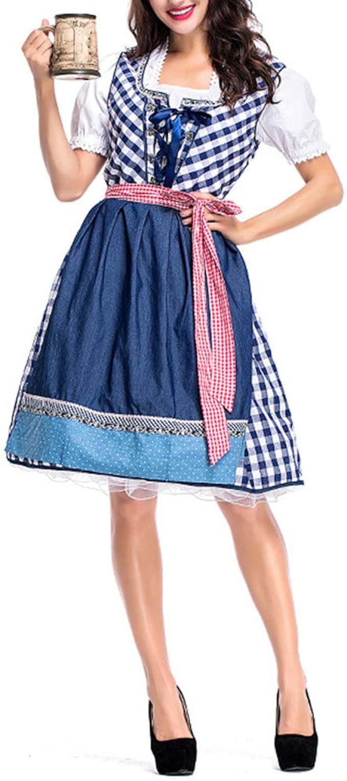 Damen Dirndl Trachtenkleid Oktoberfest Maid Plaid Kostum Outfit Verrucktes Kleid Ebay