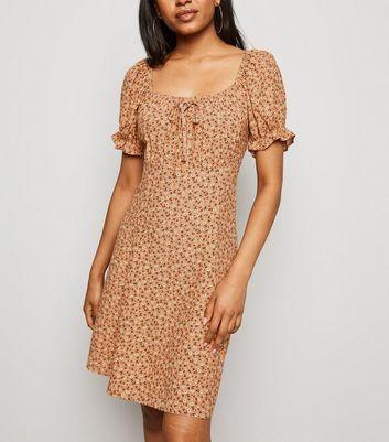 Petite Braunes Kleid Mit Blumenmuster Und Dirndl Ausschnitt From New Look On 21 Buttons