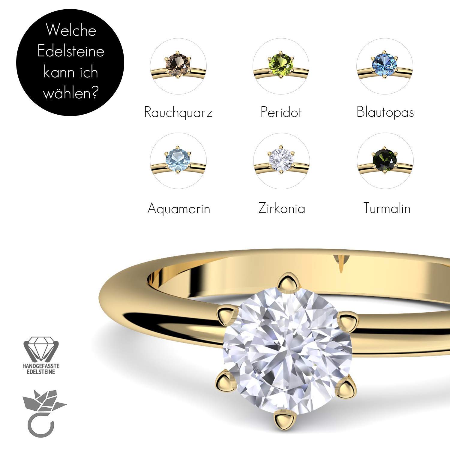 Solitaire Ringe Verlobungsring Rotgold 585 750 Personalisiert Etui Mit Individueller Gravur Damen Ring Heiratsantrag Solitar Ring Zirkonia Aquamarin Turmalin Blautopas Peridot Rauchquarz Handmade Produkte Luxdental Si