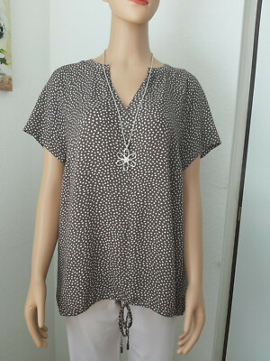 Zero Bluse Tunika Longbluse Gr 40 Braun M Weissen Punkten Polka Dots Kurzarm Ebay