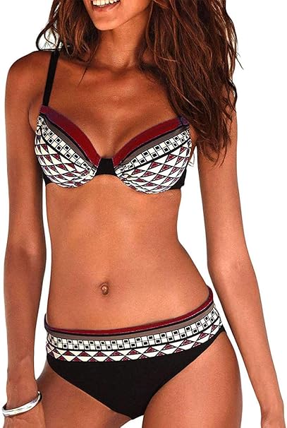 Weiwei Frauen Underwired Padded Bikini Set Tribal Print Sportliche Bikini Push Up Badeanzug Beachwear Im Retro Stil Amazon De Bekleidung