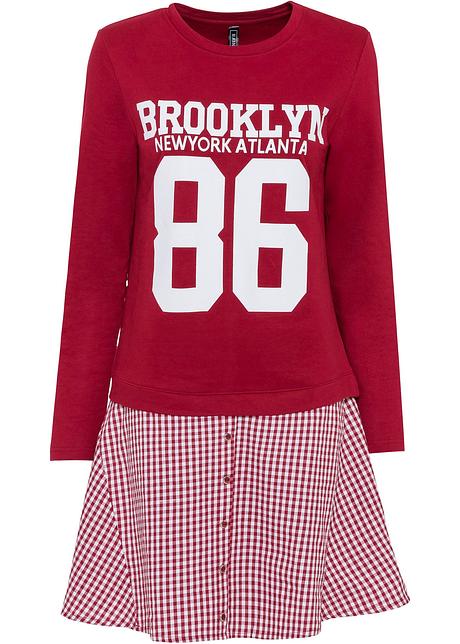 Sweatkleid Mit Bluseneinsatz Dunkelrot Weiss Bedruckt Damen Bonprix De