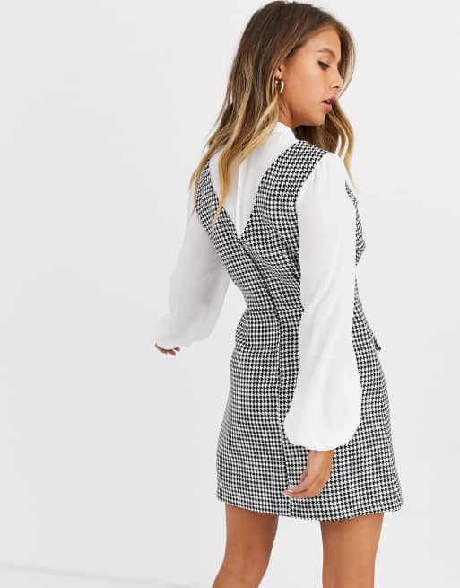 Miss Selfridge Kariertes Tragerkleid Mit Bluseneinsatz Asos