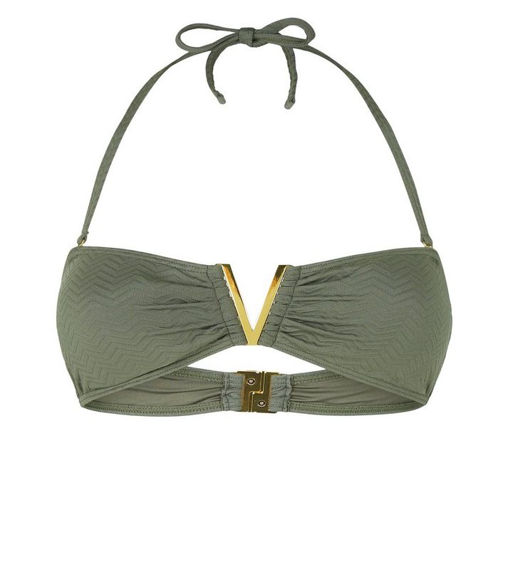 Olivgrunes Bandeau Bikini Top Mit Chevronmuster New Look