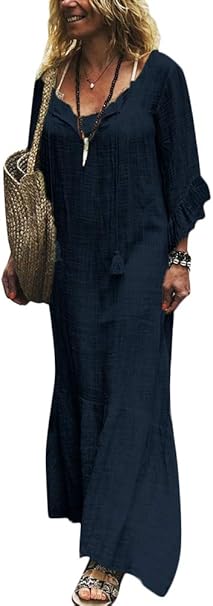 Minetom Damen Maxikleid Lose Kleid V Ausschnitt Langarm Vintage Boho Maxi Kleid Elegant Strandkleid Grosse Grossen Langes Glockenarmel Amazon De Bekleidung