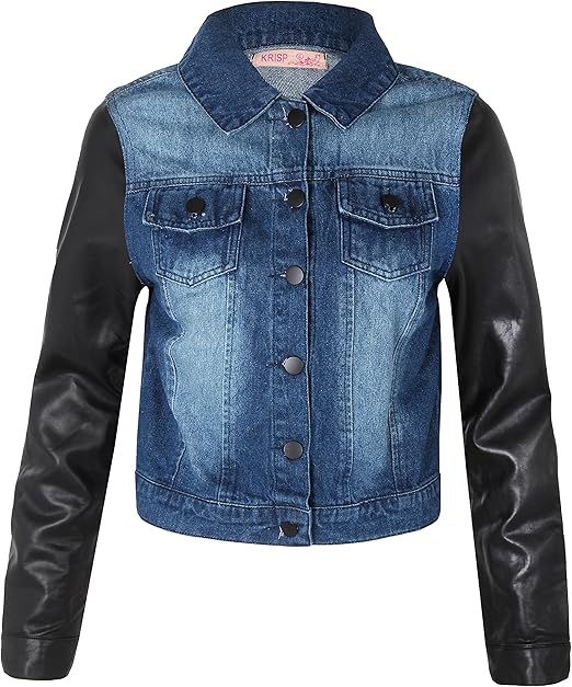Krisp Damen Jacke Jeansjacke Denim Retro 80er Jahre Jeans Lederarmel Kurze Damenjacke Geknopft Leder Armel Blau Schwarz Amazon De Bekleidung
