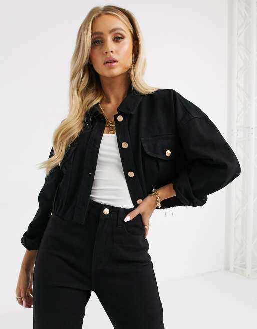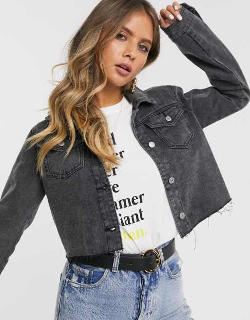Missguided Kurze Jeansjacke In Schwarz Asos