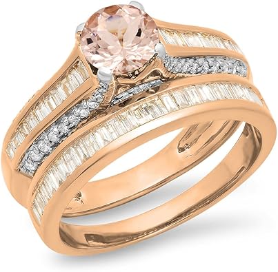 Damen Ring Ehering 14 Karat Rotgold Baguette Schnitt Morganite Diamant Vintage Verlobungsring Ehering Set Amazon De Schmuck