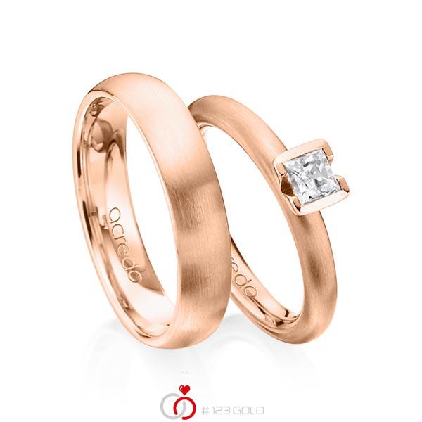 Paar Klassische Trauringe Eheringe In Rotgold 585 Mit 0 4 Ct Prinzess Diamant Tw Vs Von Acredo